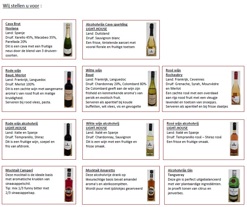Dit jaar organiseren we terug een wijn- en cavaverkoop én hebben we ook alcoholvrije wijn en cava in ons assortiment.